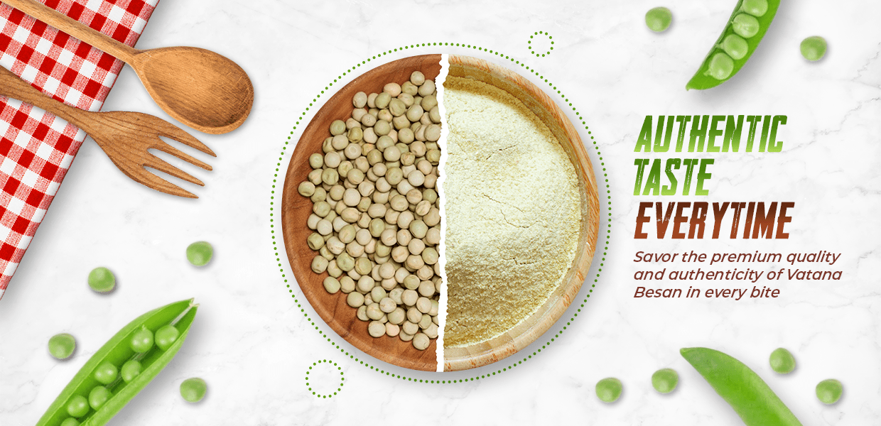 Watana Besan, crafted from finely milled dry green peas, is a highly versatile flour widely used across India to prepare flavorful snacks and dishes.